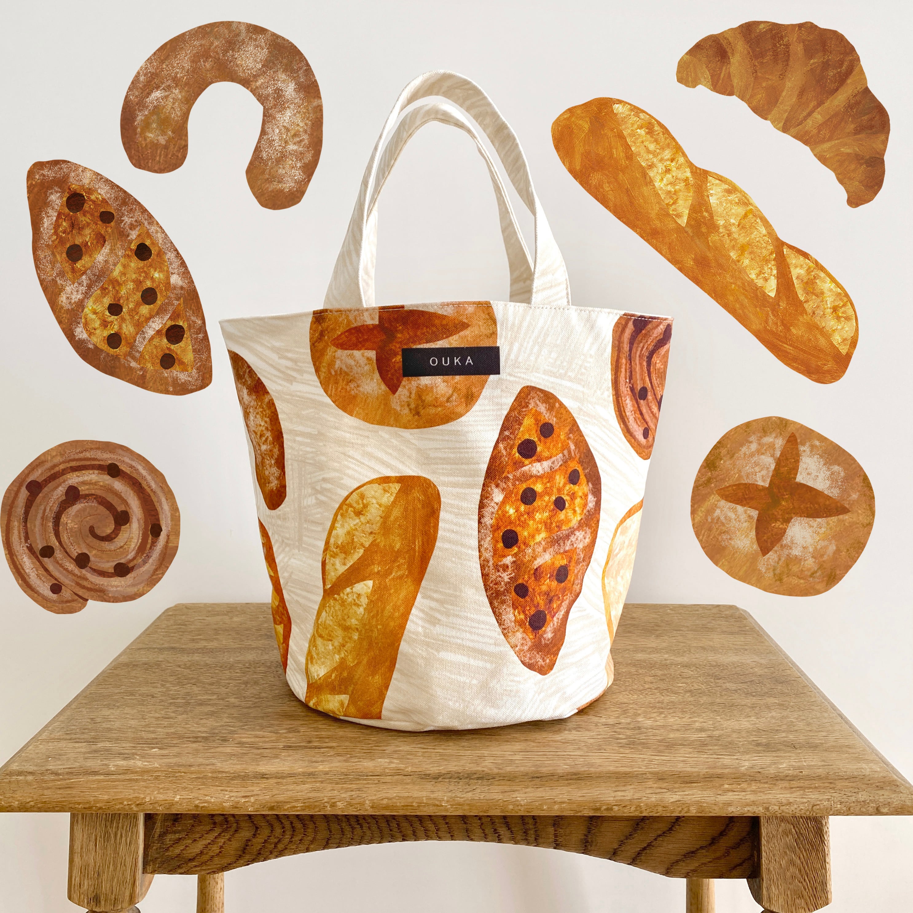 /手描き/ミニバッグ/暮らし/誕生日プレゼント/ギフト/女性/ハンドメイド/布バッグ/ハンドバッグ/日本製/バケツトート/可愛い/丸底/母の日/帆布トート/おしゃれ/鞄/北欧/ピクニックバッグ/お買い物バッグ/入学祝い/お揃い/OUKA/おうか/オウカ/OUKAテキスタイル/クリスマス/冬/オーナメント/ミナペルホネン好きさんにおすすめ/手描き/ほっこり/ナチュラル/コットン/プレゼント/お母さん/彼女/お菓子/食べ物/フランスパン/クロワッサン/食パン/