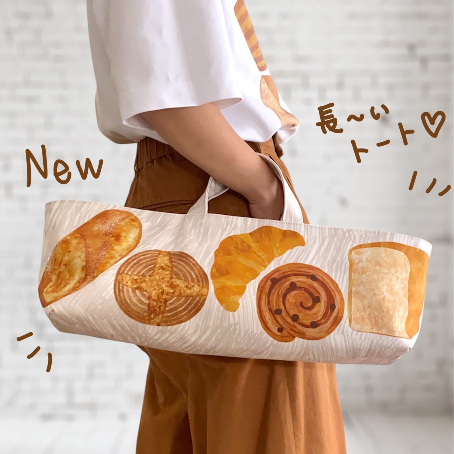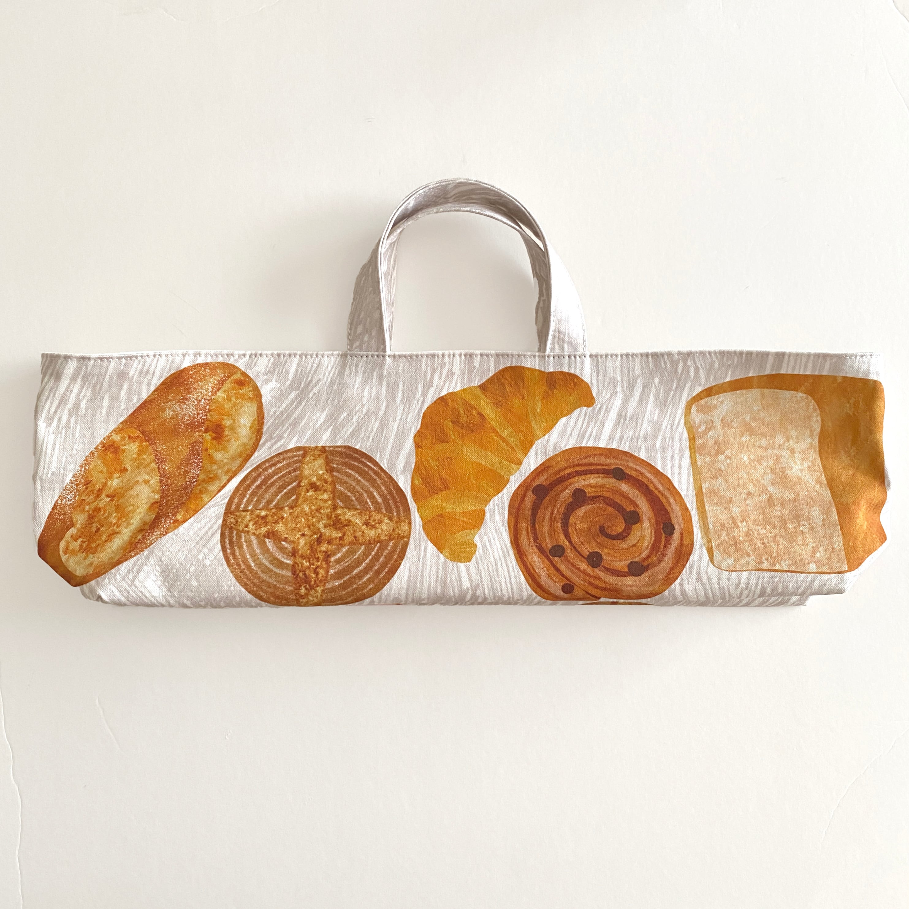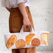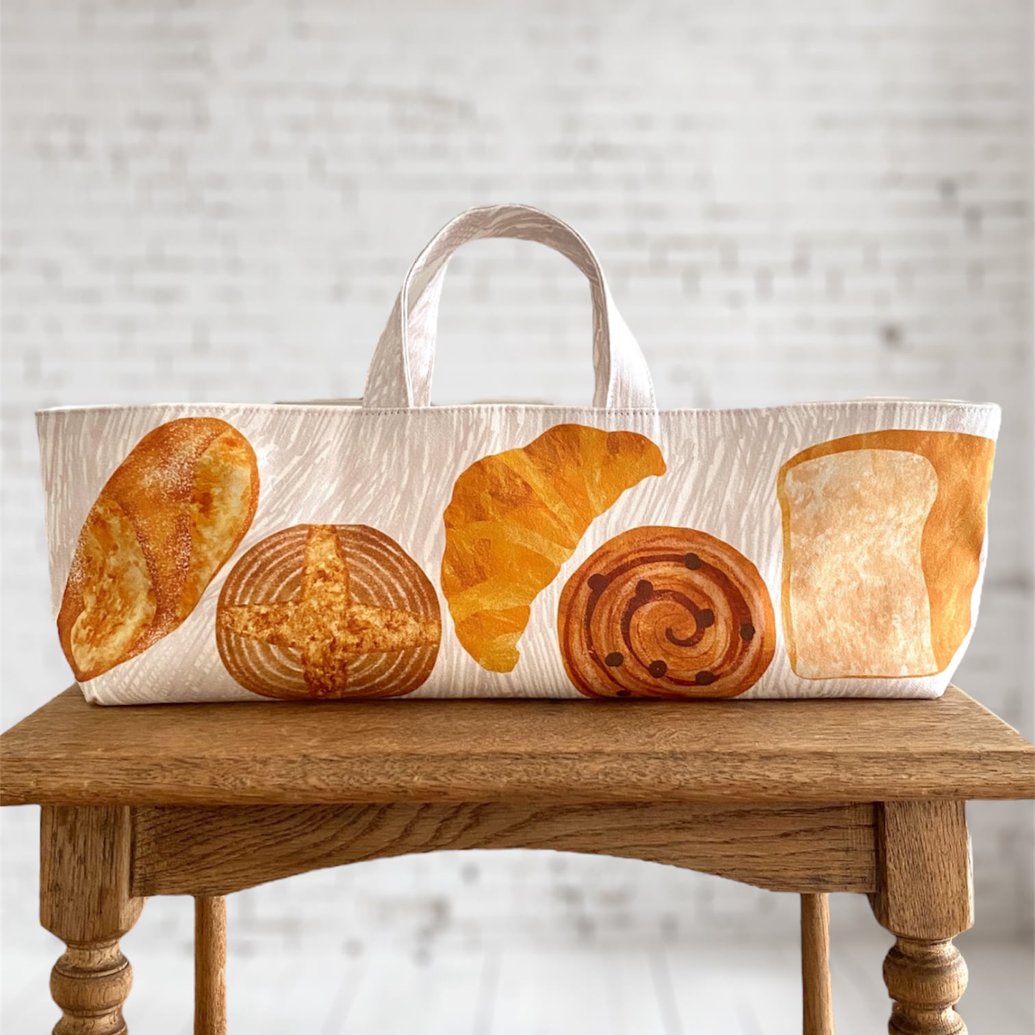 クッペ、カンパーニュ、クロワッサン、うずまきパン、食パンの描かれたおしゃれな横長トート。