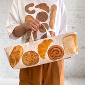 『食パンクロワッサンMIX柄』横長帆布トートバッグ:2月末までに発送