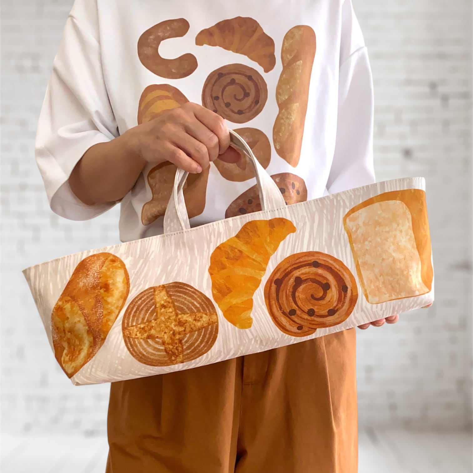 フランスパン バゲット パン かばん バッグ トート 帆布 横長 ファッション おしゃれ ピクニック 女性 プレゼント ギフト 北欧 日本製 トートバッグ ハンドバッグ 手描き アイボリー 絵本 パン屋 パン好き OUKAテキスタイル ピアニカケース ピアニカバッグ 楽器ケース リコーダー入れ 笛入れ