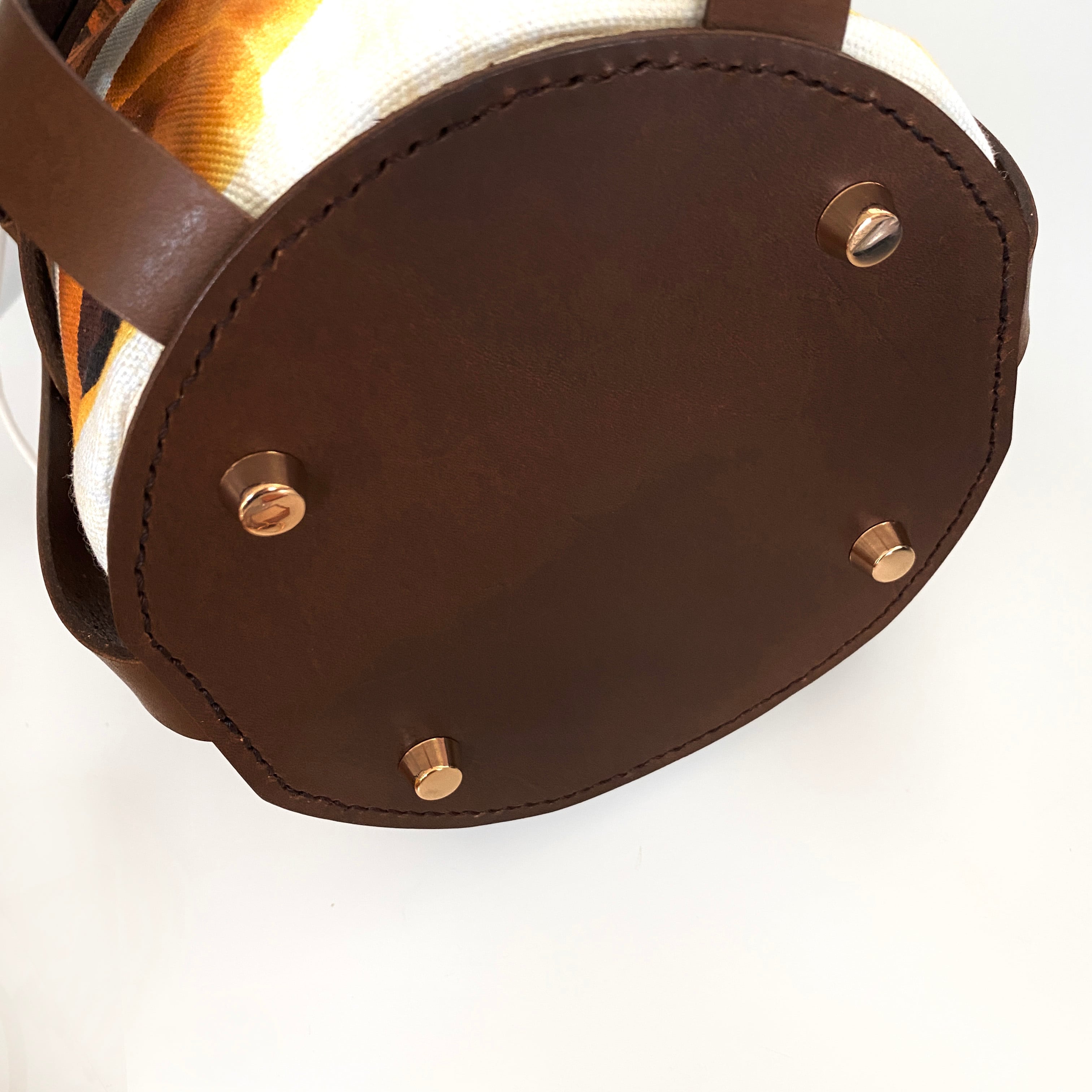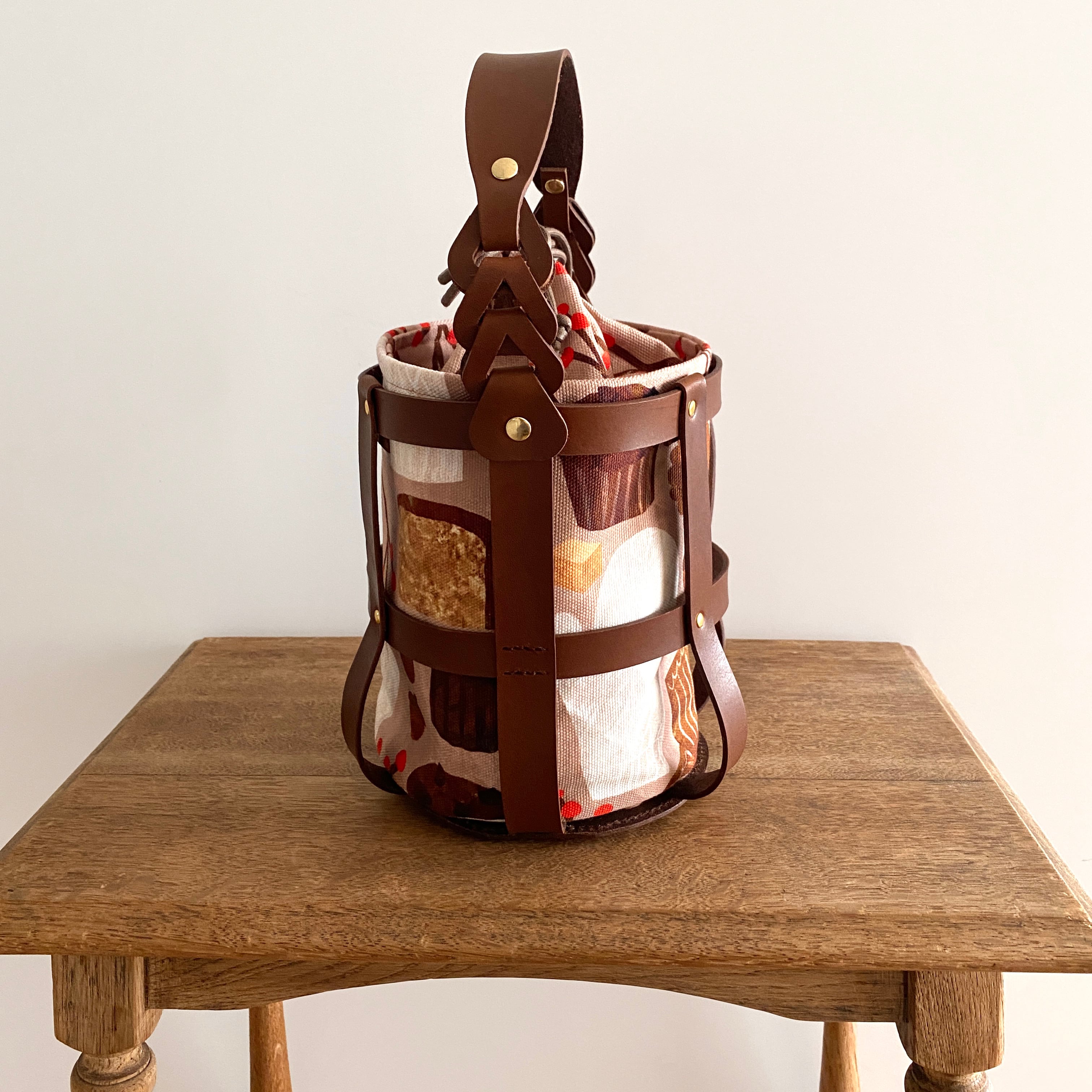 上質なチョコレートブラウンの本革をおしゃれなワンハンドルかごバッグに仕立てました。