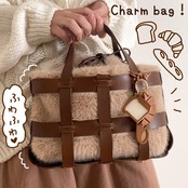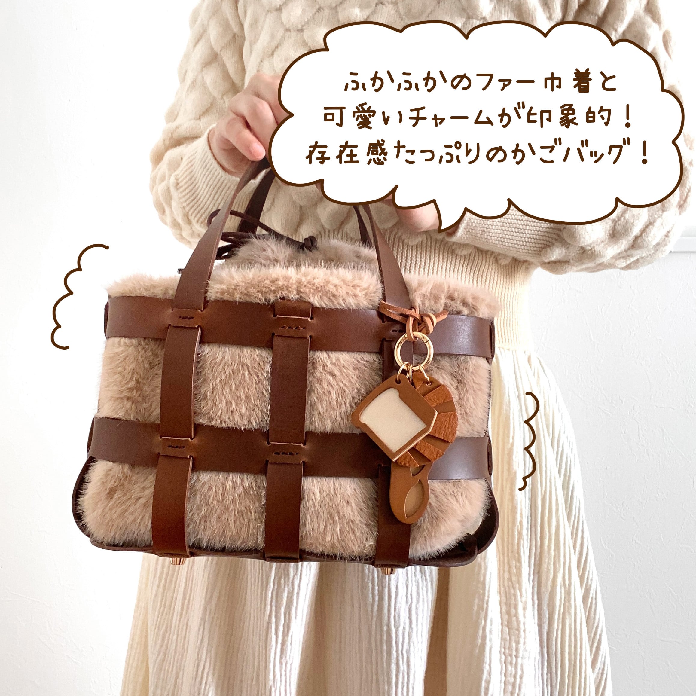 【冬限定】パンチャーム付き!ふわふわファー巾着の本革かごバッグ