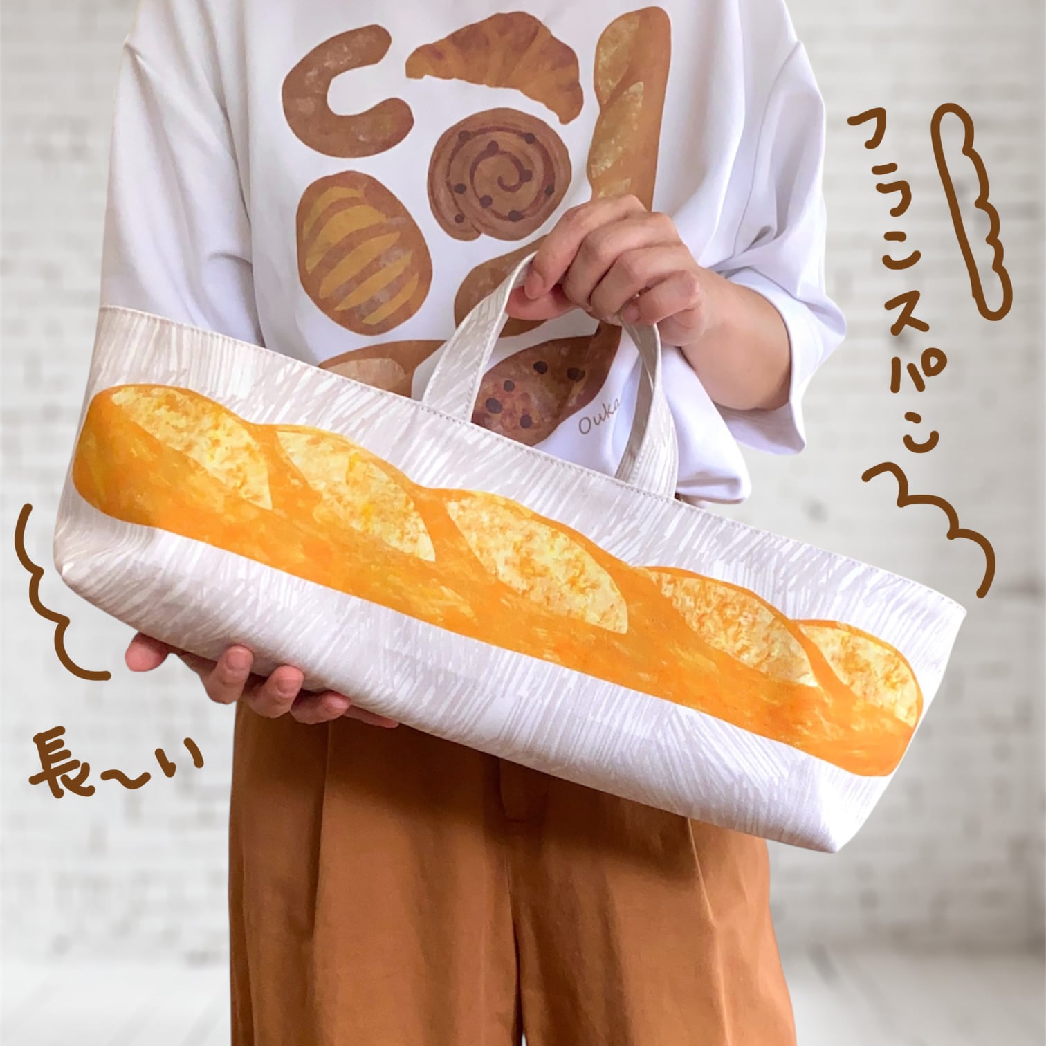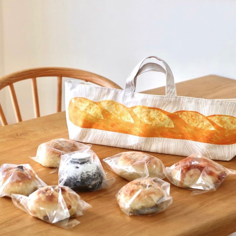 『食パンクロワッサンMIX柄』横長帆布トートバッグ