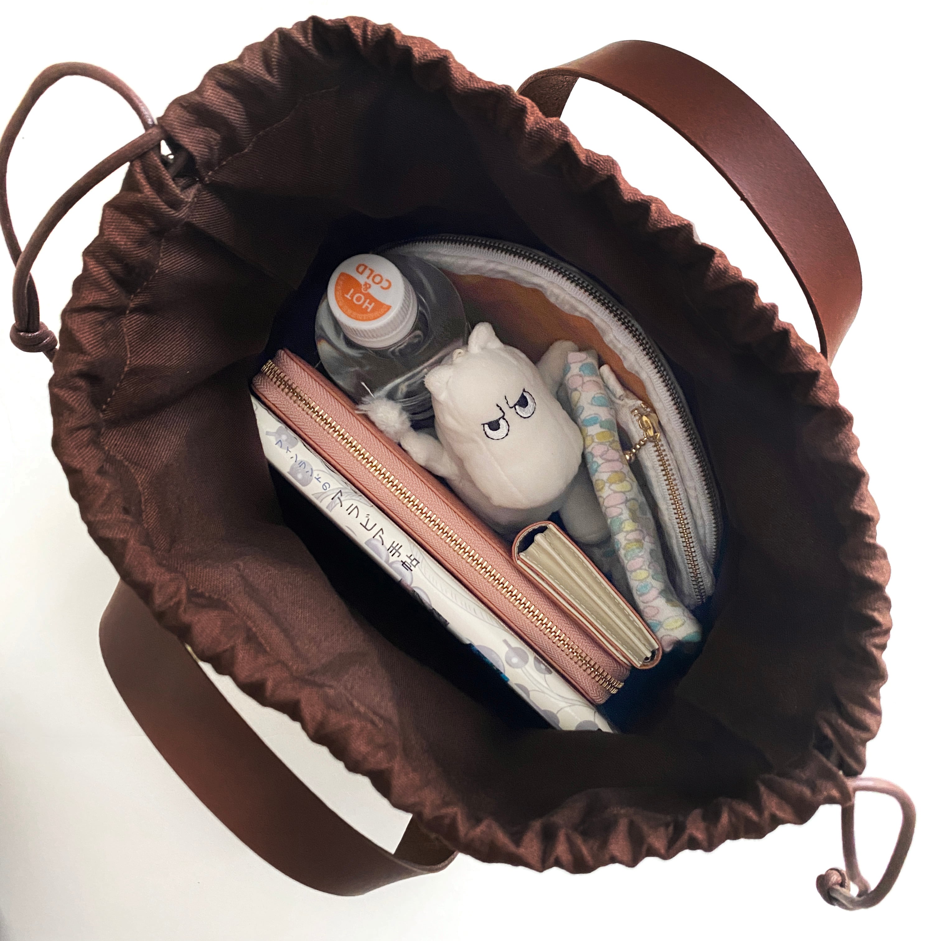 出し入れが多い時は巾着を開けて内側に入れておけば、開いた状態でも使える優れもの!