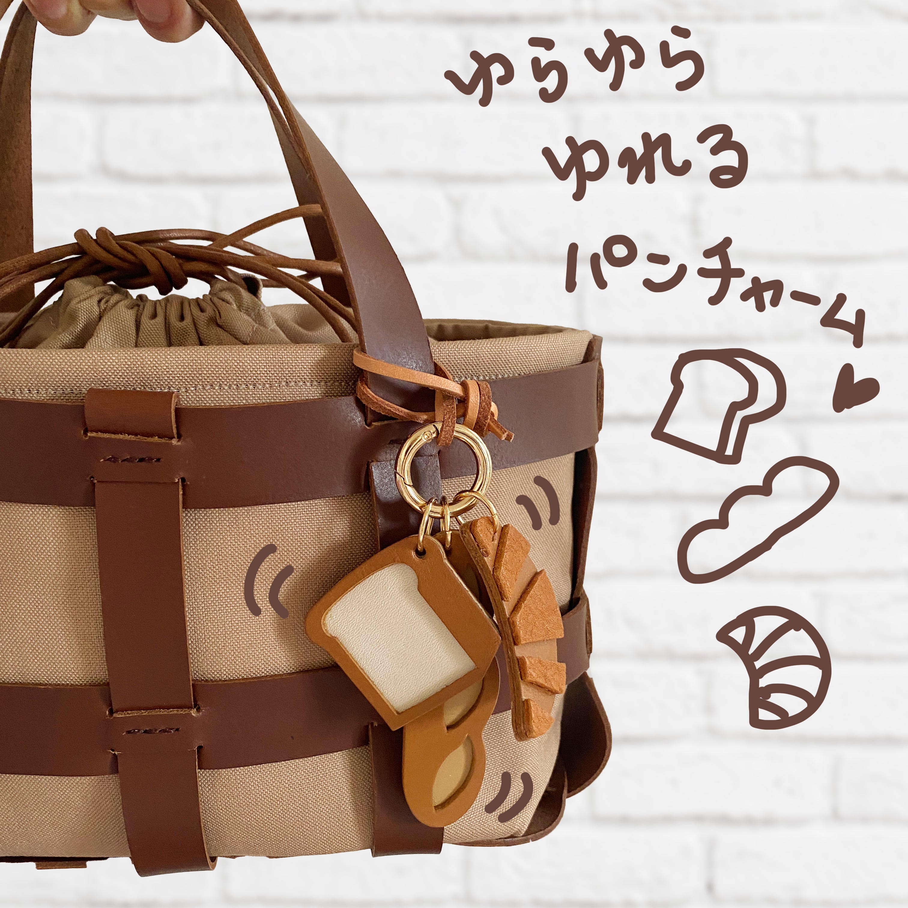 【新色カフェオレ色】パンチャーム付き!巾着の本革かごバッグ:10日〜30日以内に発送